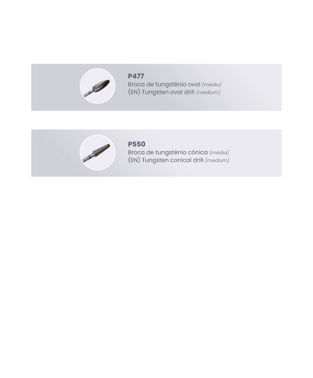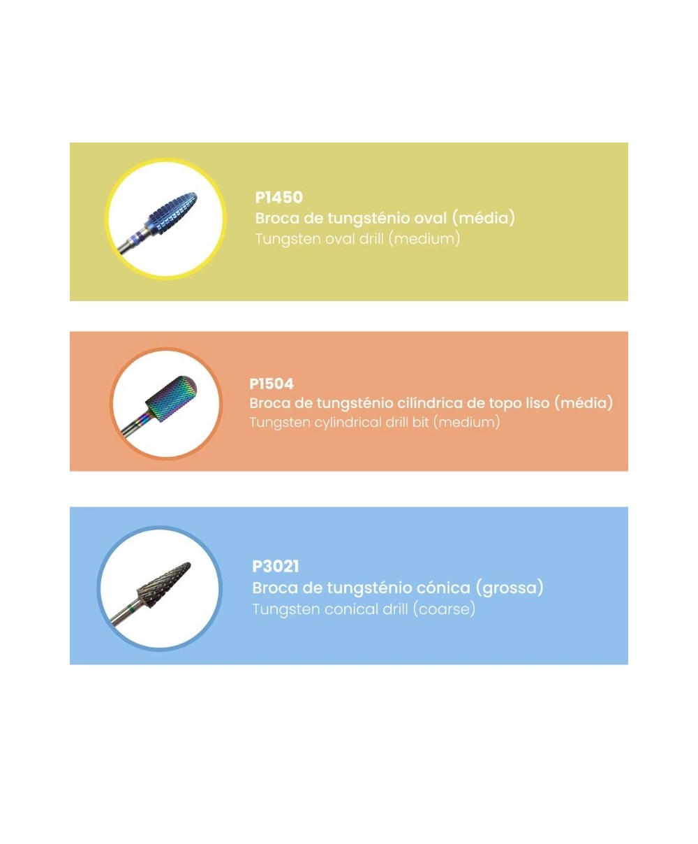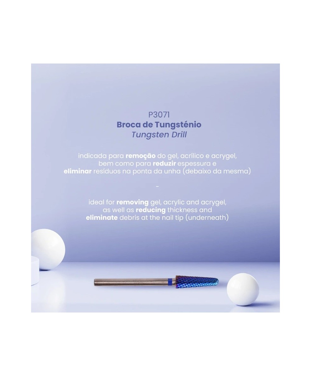 As brocas de tungsténio são ideais para remoção de gel, acrílico e acrygel bem como para reduzir espessura e eliminar resíduos na ponta da unha (debaixo da mesma).