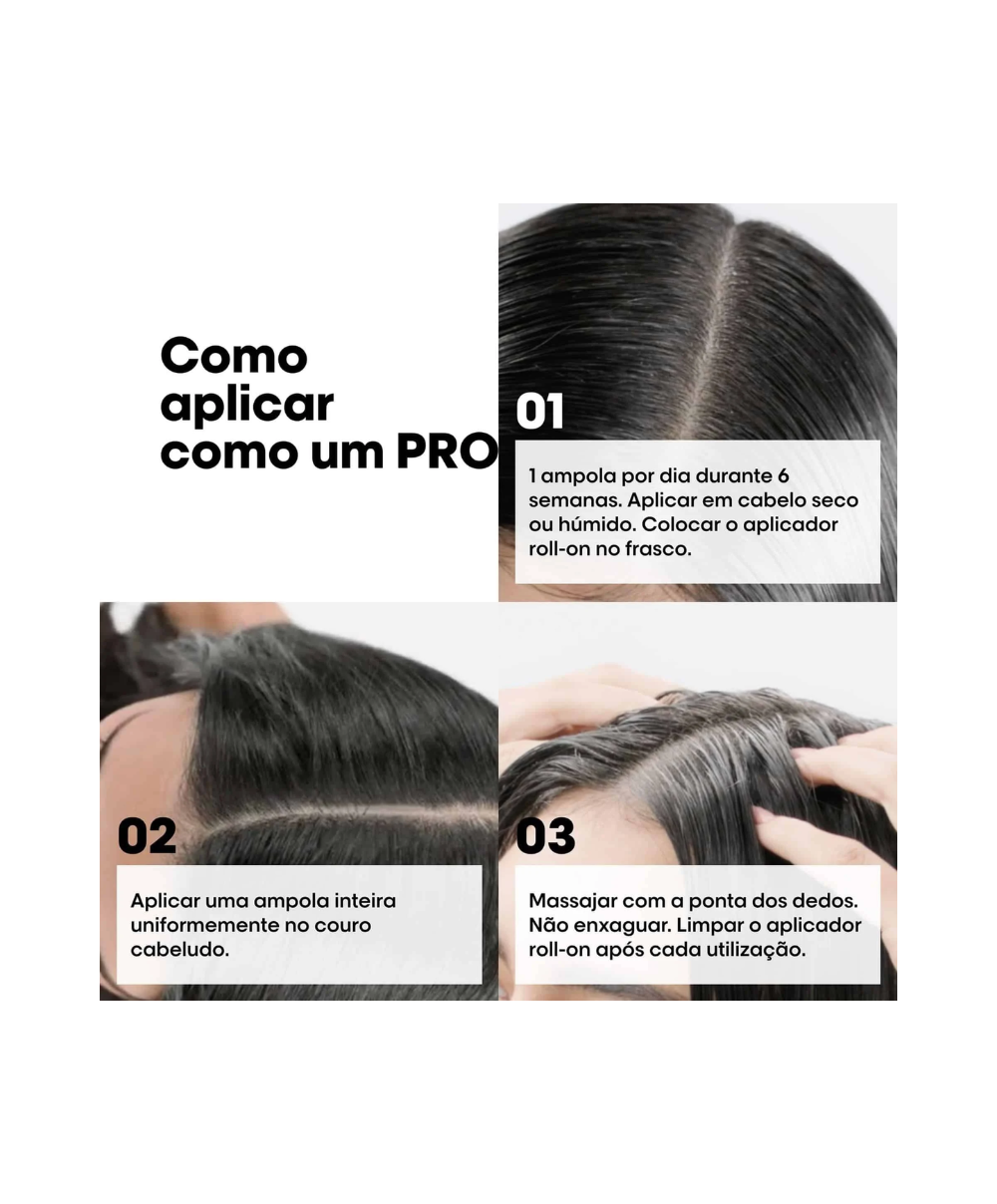 Aplique uma ampola completa uniformemente no couro cabeludo.
