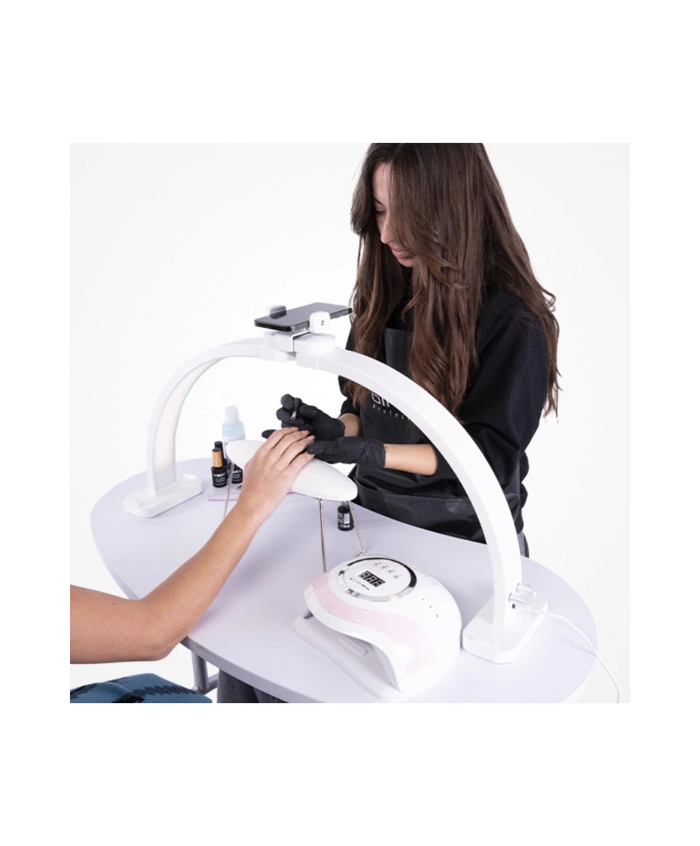 Lampada de mesa para manicure, projetada para funcionalidade e estilo. Seu formato crescente se adapta a qualquer superfície de trabalho.