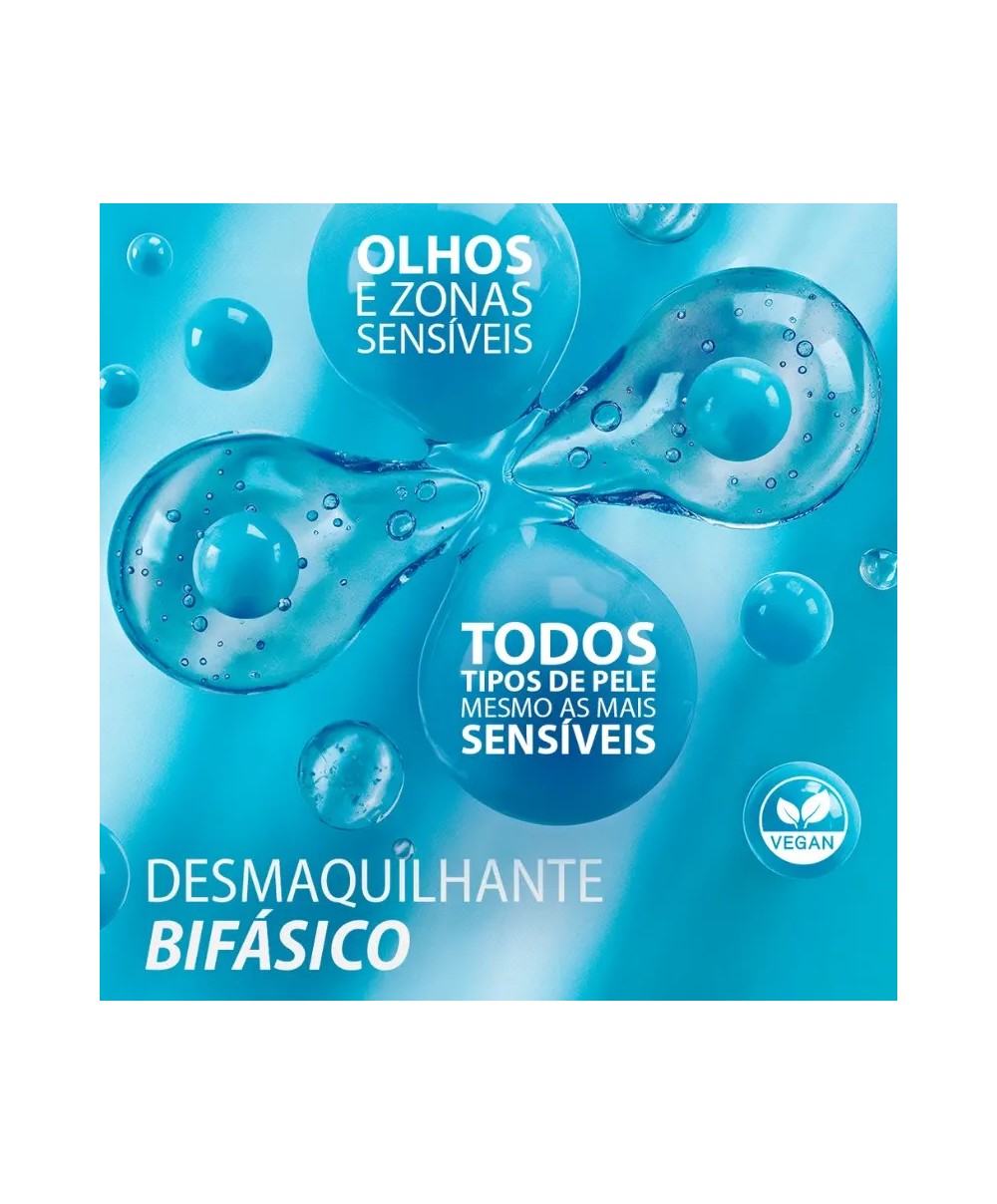 O Desmaquilhante Bifásico é especialmente formulado para olhos e zonas sensíveis, removendo eficazmente maquilhagem resistente incluindo à prova de água.