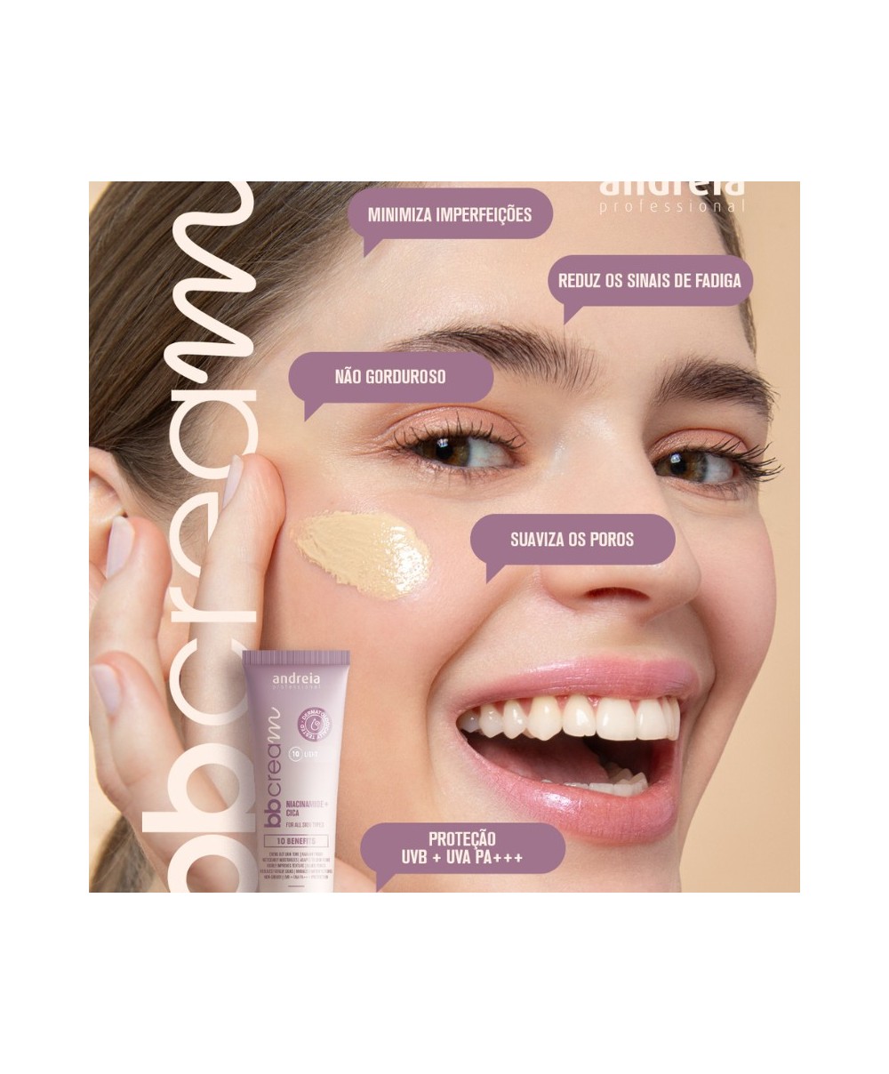 O BB Cream Andreia Professional oferece cor, cuidado e proteção numa só aplicação, proporcionando à pele um efeito radiante, suave, confortável e naturalmente bonito ao longo do dia.