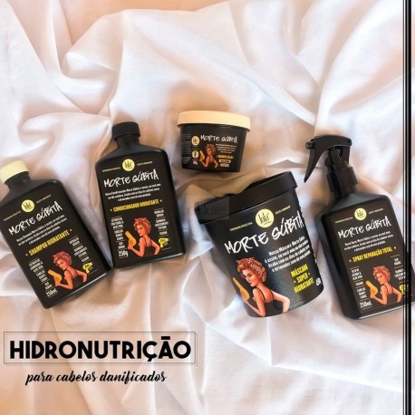 A linha Morte Súbita é super completa, atende às nossas necessidades diárias com champô e condicionador, tem a máscara que salva o nosso cabelo dos danos semanais e o champô sólido que faz aquele detox quinzenal SUPER que toda a gente precisa fazer no couro cabeludo.