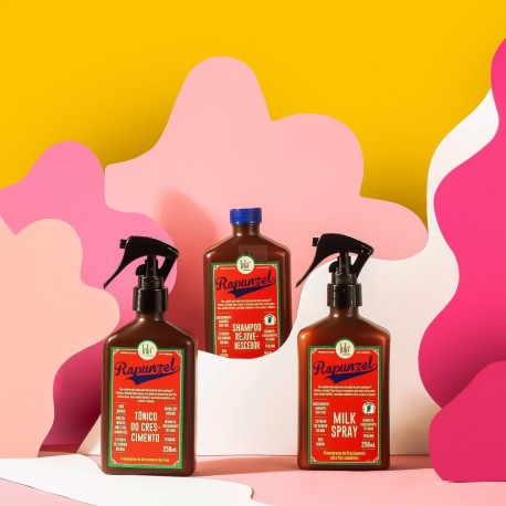A linha Rapunzel ajuda a reduzir a queda de cabelo e auxiliar no crescimento capilar, além de prevenir o envelhecimento do cabelo e estimular o crescimento saudável dos novos fios. Os cabelos ficam fortes, resistentes e com brilho.