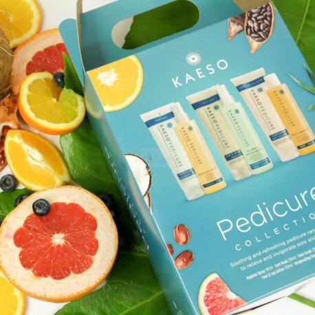 Pacote de pedicure com uma variedade de produtos Kaeso calmantes e refrescantes . Inclui todos os produtos necessários para acalmar e revigorar pés doloridos e cansados. Agora tudo embalado em uma linda caixa de papelão biodegradável e fácil de transportar .