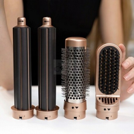 Secador que inclui 5 acessórios diferentes intercambiáveis para que você possa obter sempre o resultado desejado. Poderá conseguir diferentes acabamentos graças ao seu bico, à sua escova redonda, à sua escova alisadora e aos seus dois cilindros de ondulação. Possui temperatura máxima de 90ºC e botão de ar frio para finalizar os penteados com brilho intenso e duradouro.